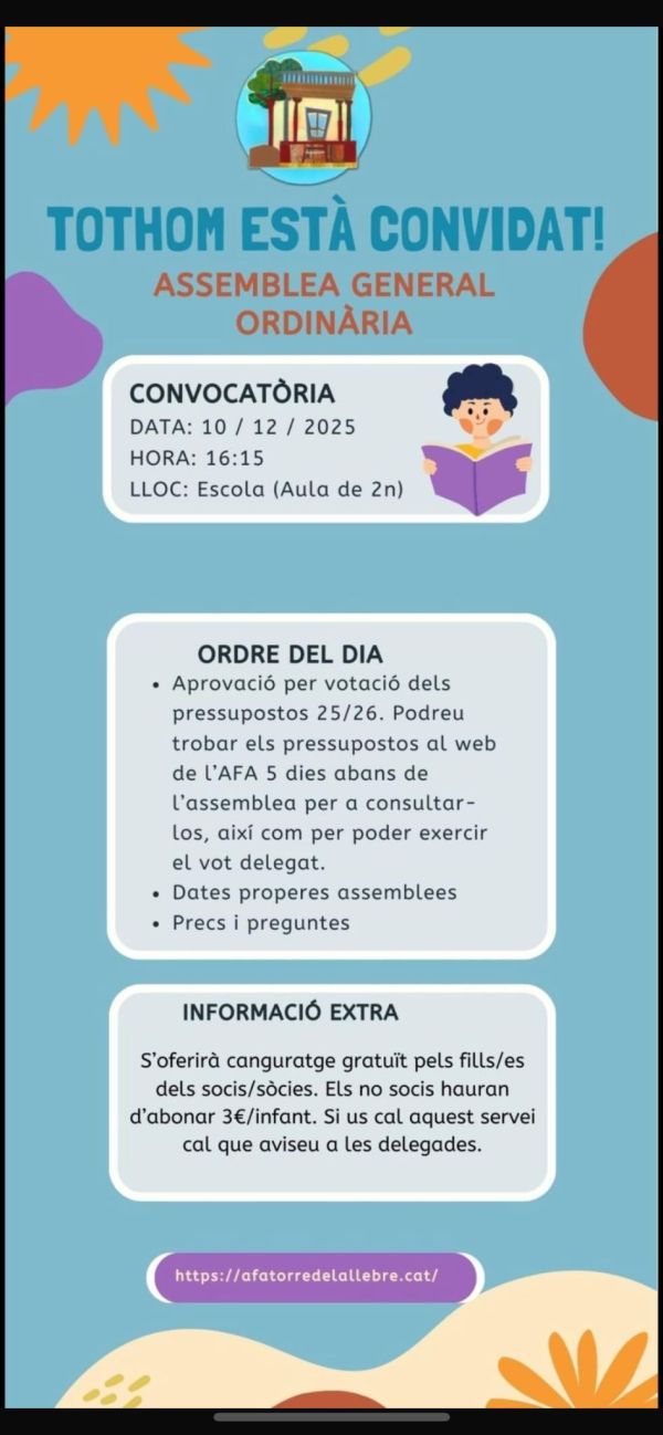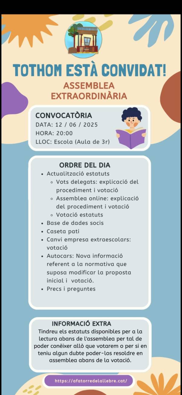 Propera assemblea extraordinària serà el 12/06/2025 a les 20:00 a l'aula de 3r.