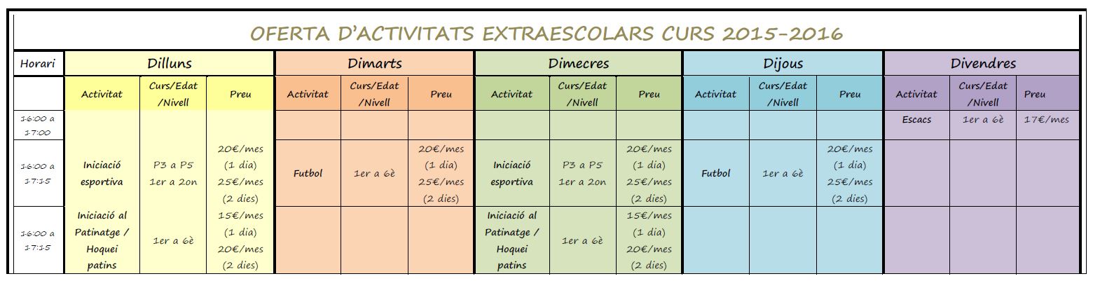 I, com sempre, si teniu cap dubte o comentari, poseu-vos en contacte amb la comissió d’extraescolar i us ajudarem.