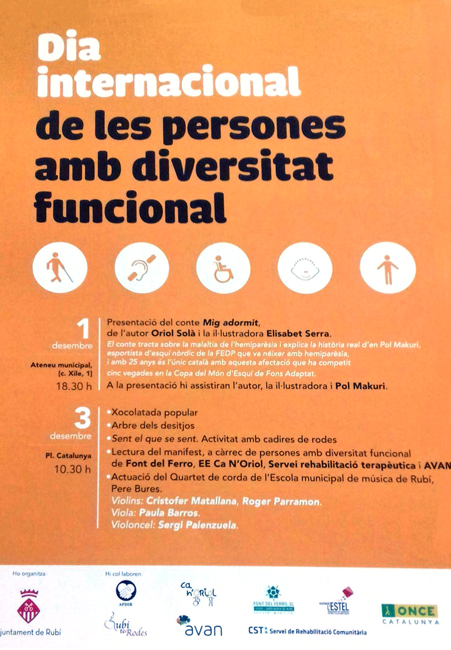 Dia Internacional de les Persones amb Diversitat Funcional Fem difusió de les activitats que es realitzaran els dies 1 i 3 de desembre a la nostra ciutat amb motiu del Dia Internacional de les Persones amb Diversitat Funcional. Comparteix Feu clic per compartir al WhatsApp (S'obre en una nova finestra) WhatsApp Feu clic per compartir al Facebook (S'obre en una nova finestra) Facebook Feu clic per compartir a X (S'obre en una nova finestra) X Relacionats Deixa un comentari Cancel·la la resposta Δ