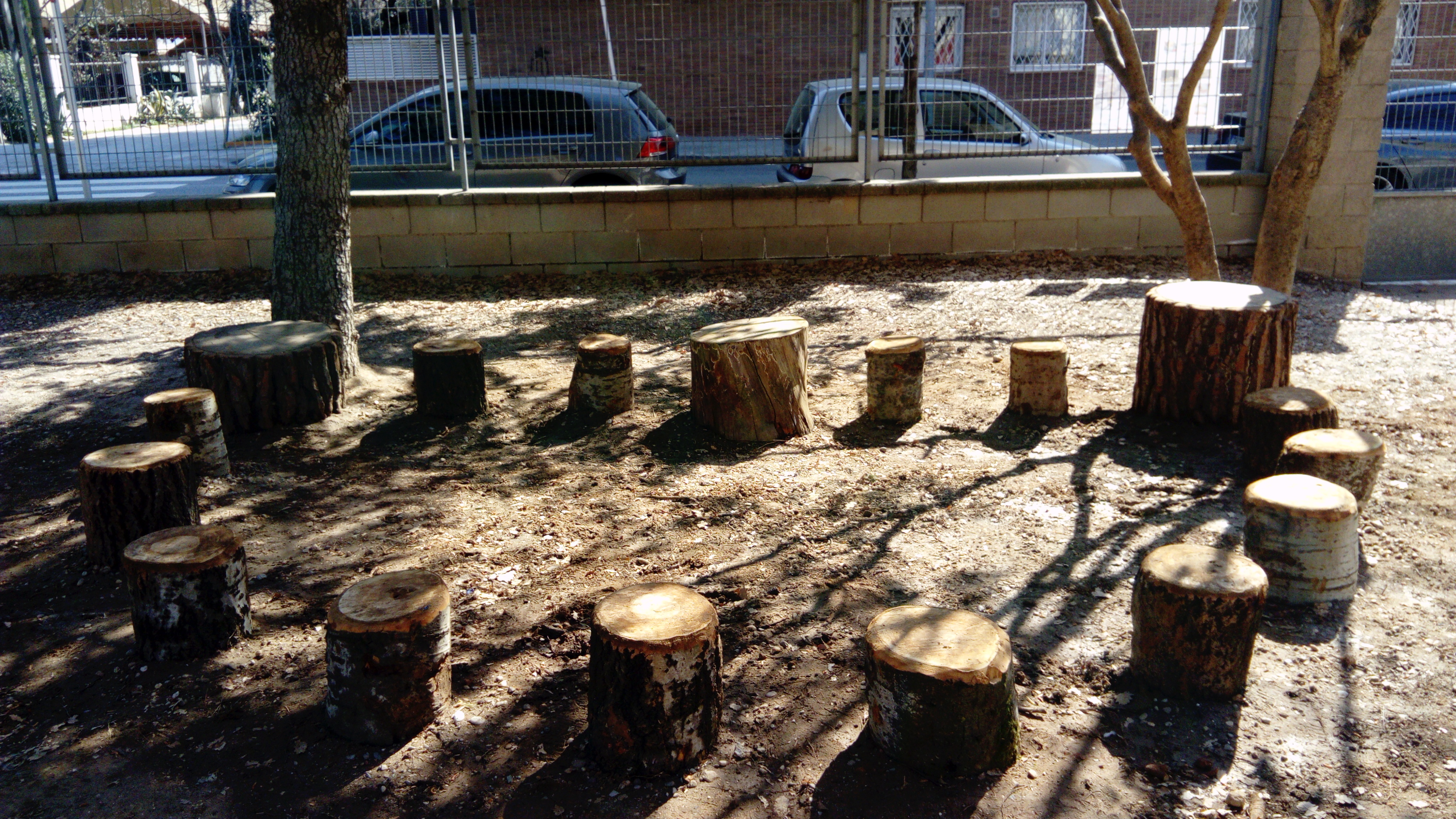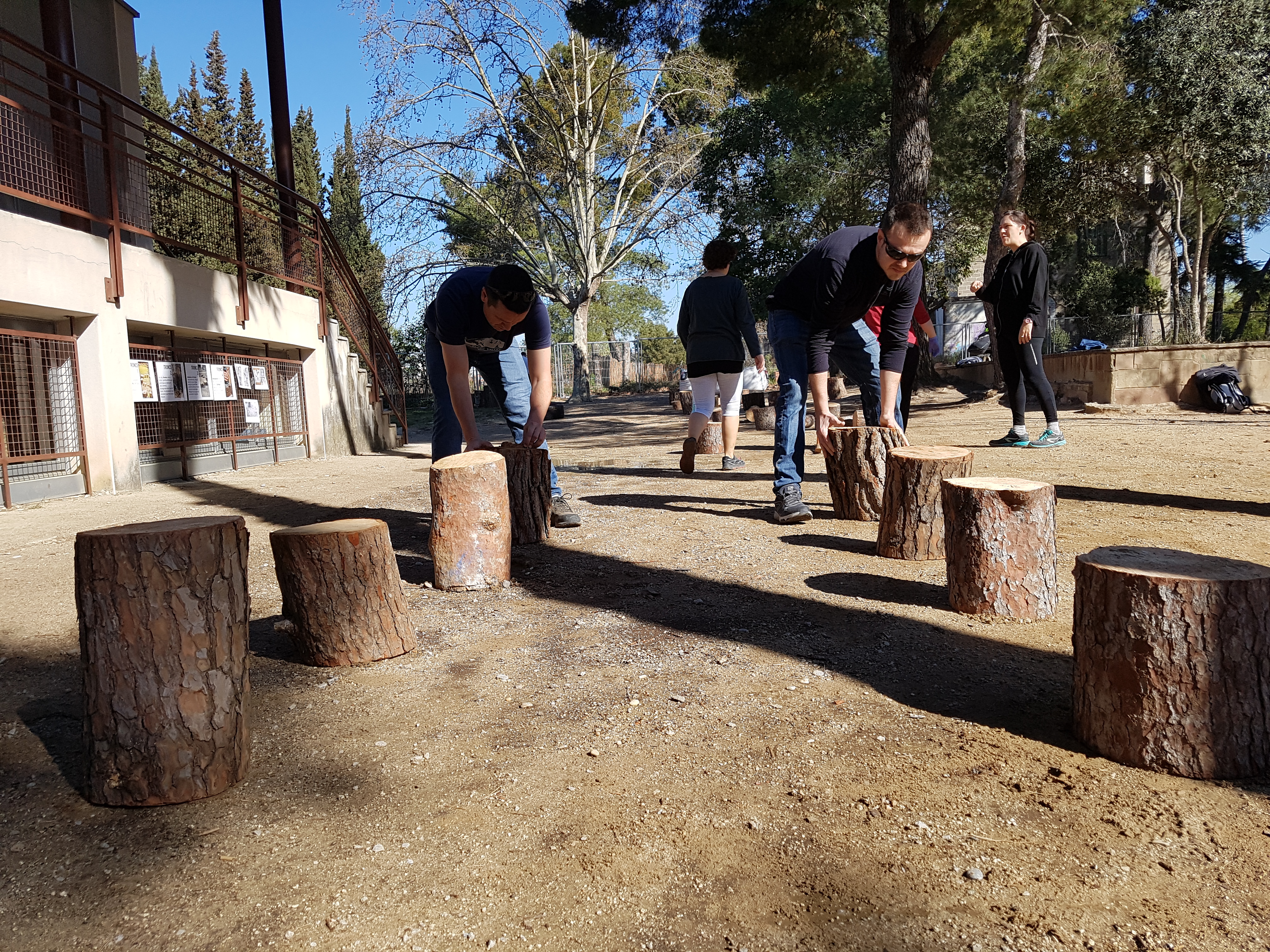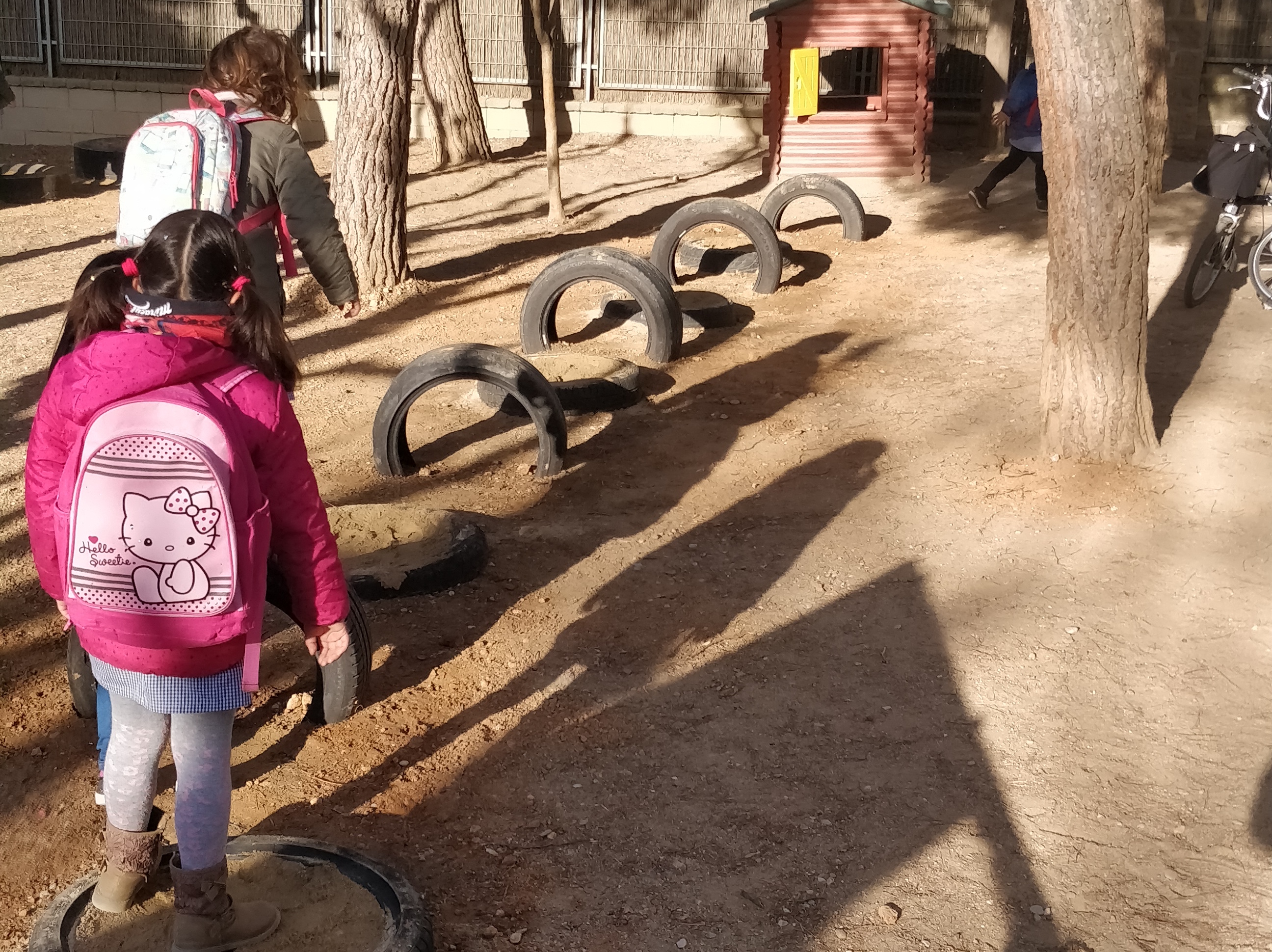 Arribem a l’escola, fa molt bon temps. Encara som poquets, la resta de la gent trigarà una estona a arribar. Ho enllestim tot, ens distribuïm les tasques i som-hi!