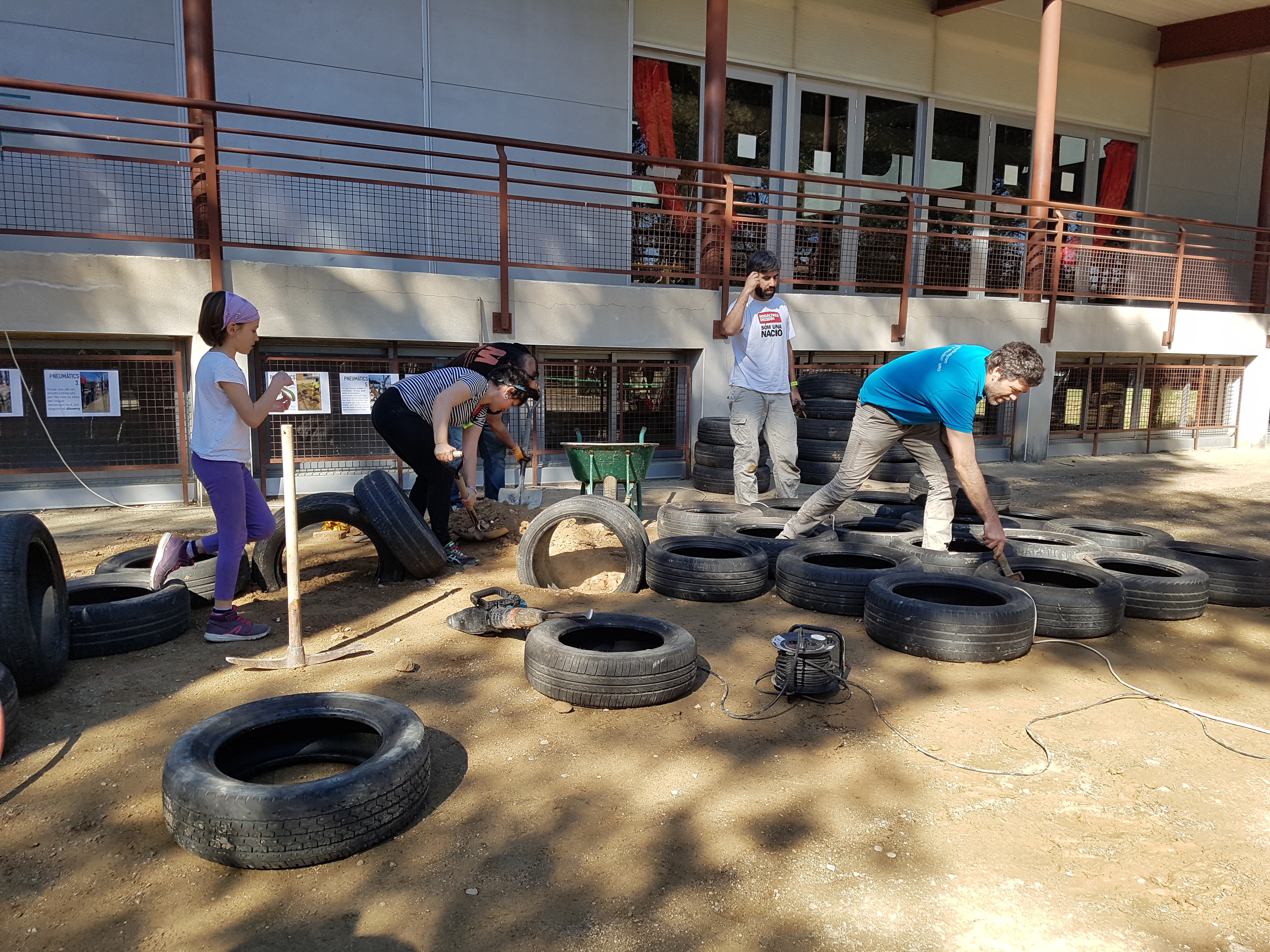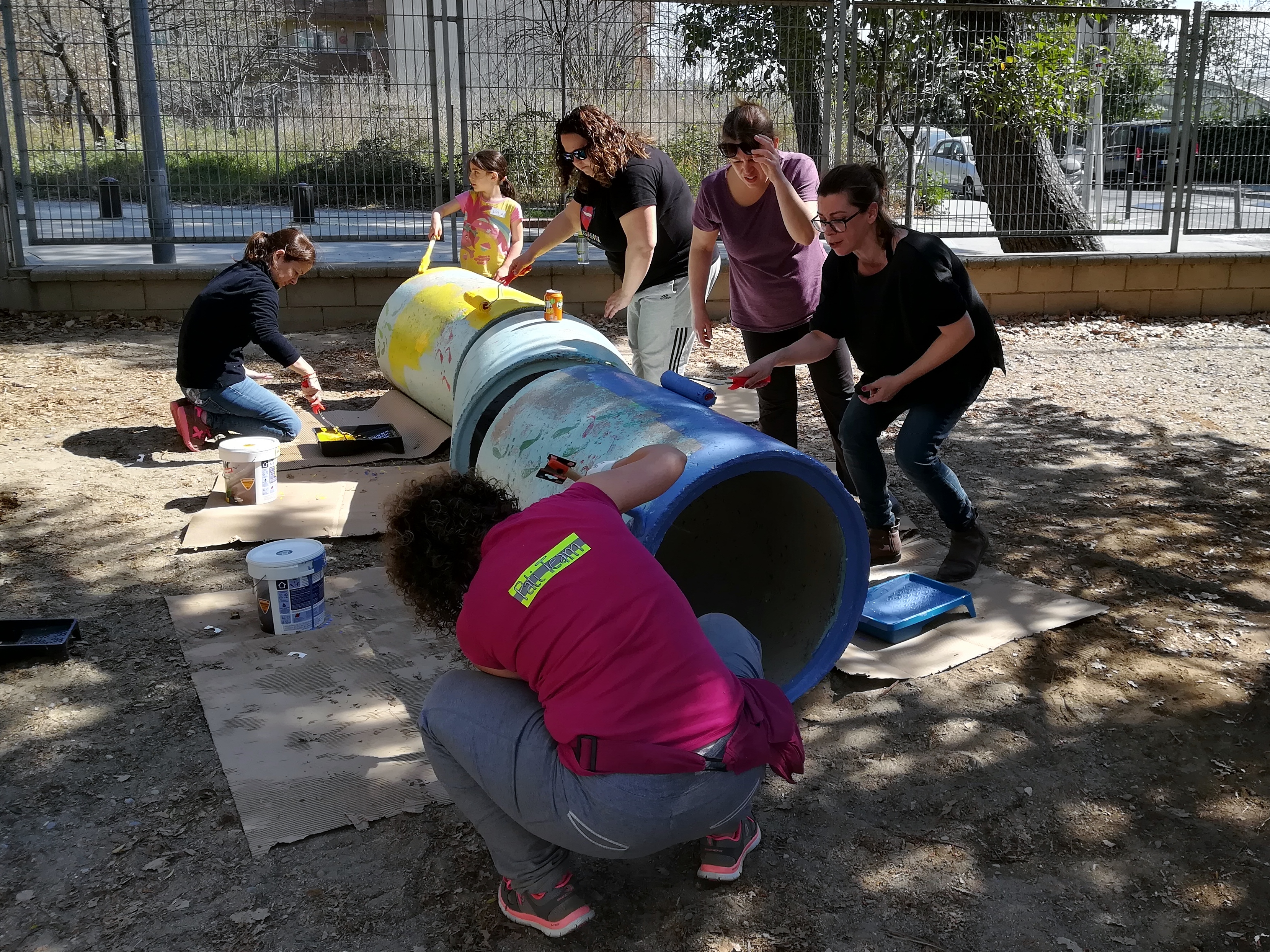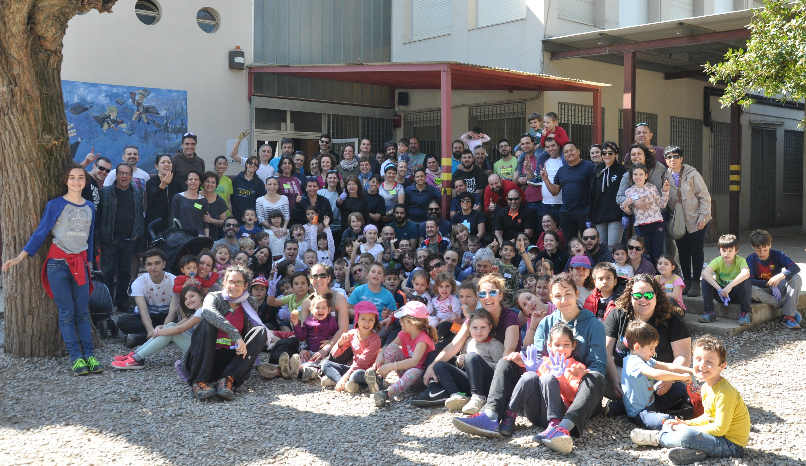 En un obrir i tancar d’ulls l’escola s’ha anat omplint de famílies, tothom amb un somriure als llavis, amb eines diverses i amb ganes de treballar i dedicar un matí a realitzar un projecte compartit.
