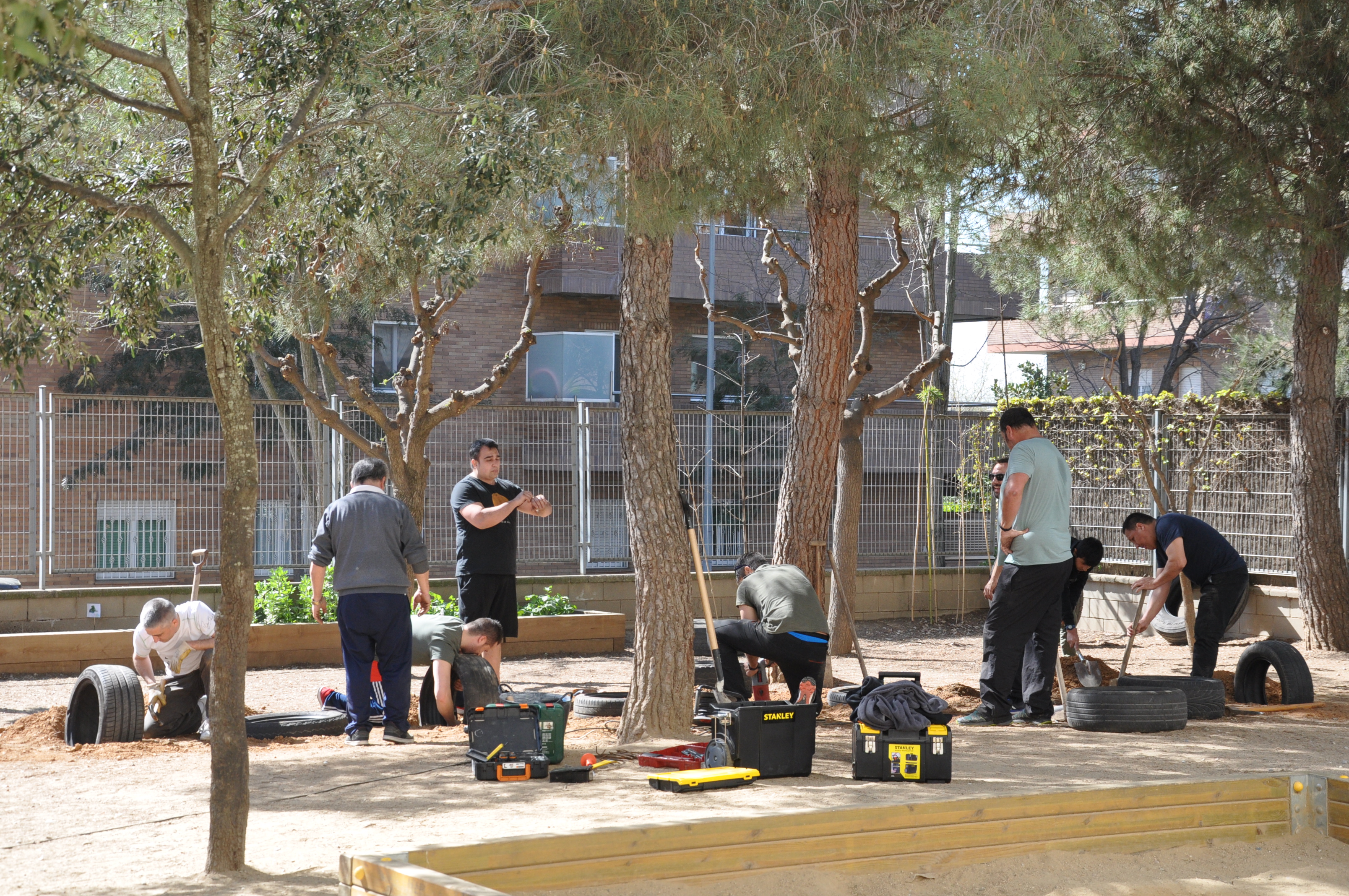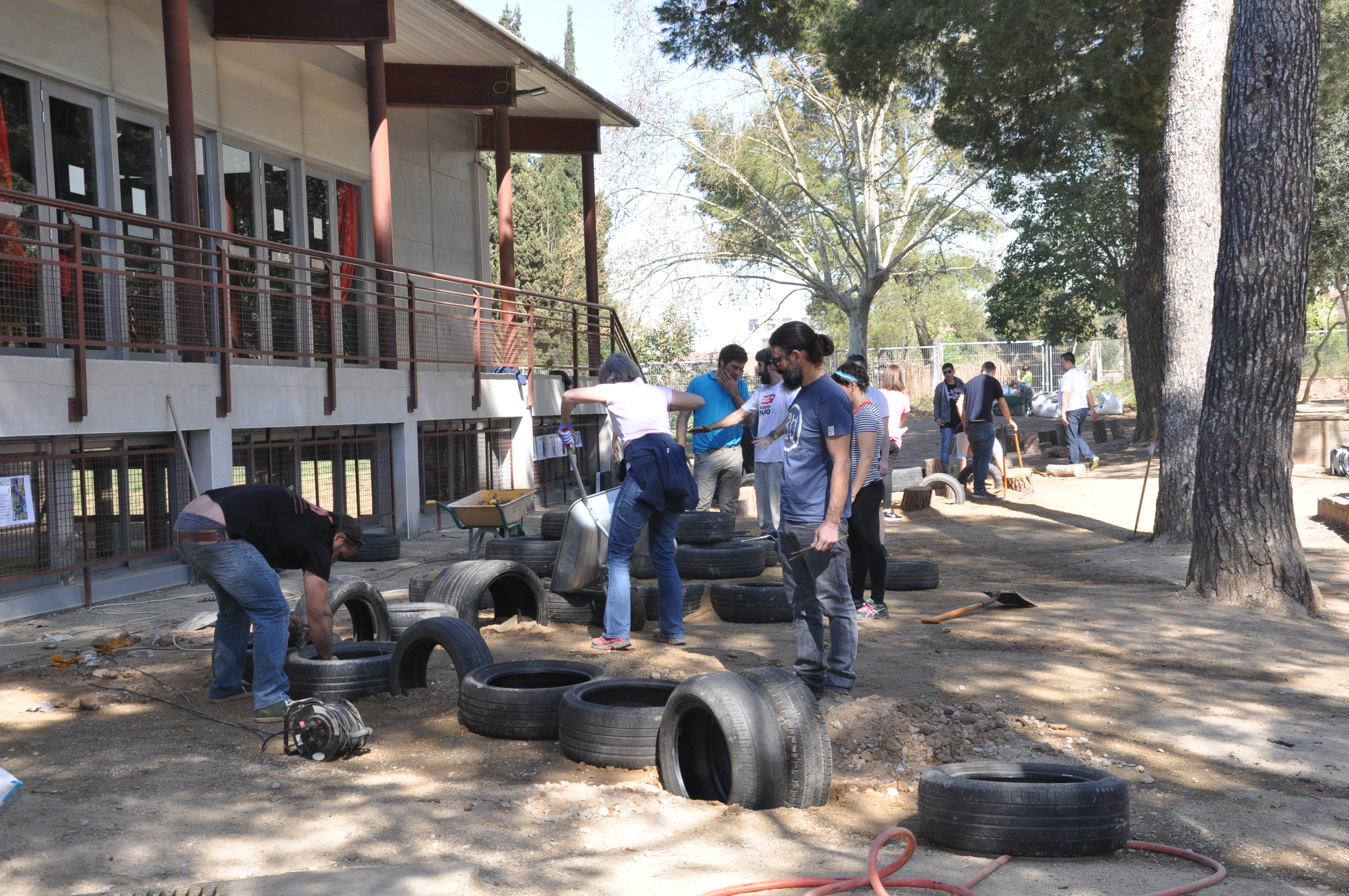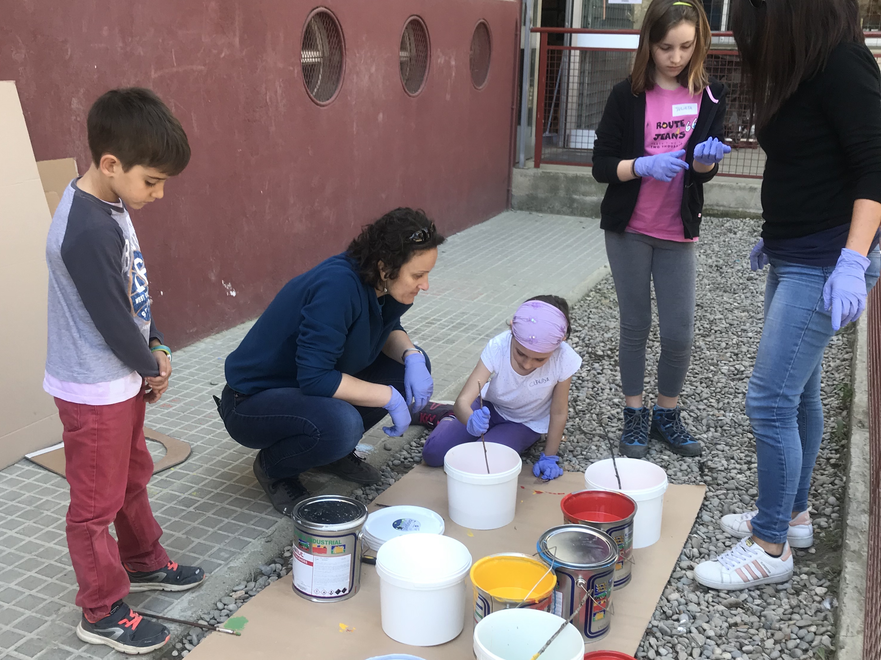 En un obrir i tancar d’ulls l’escola s’ha anat omplint de famílies, tothom amb un somriure als llavis, amb eines diverses i amb ganes de treballar i dedicar un matí a realitzar un projecte compartit.
