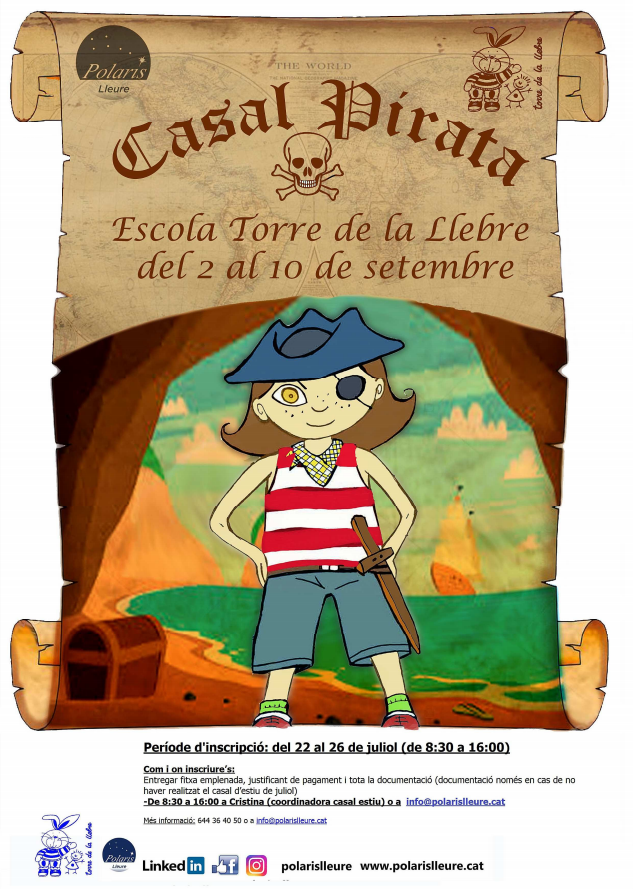 Us fem arribar la informació i la fitxa d’inscripció pel casal de setembre de 2019 per tal que us pugueu apuntar durant aquesta setmana. Podeu entregar la fitxa, pagament i documentació (documentació només si no heu realitzat casal al juny-juliol amb nosaltres) durant aquesta última setmana de casal d’estiu a la Cristina (coordinadora del casal) o a aquest correu electrònic info@polarislleure.cat. Us agrairíem que ens contesteu també en cas de que NO estigueu interessats per tal d’estudiar la viabilitat del mateix durant aquesta setmana.
