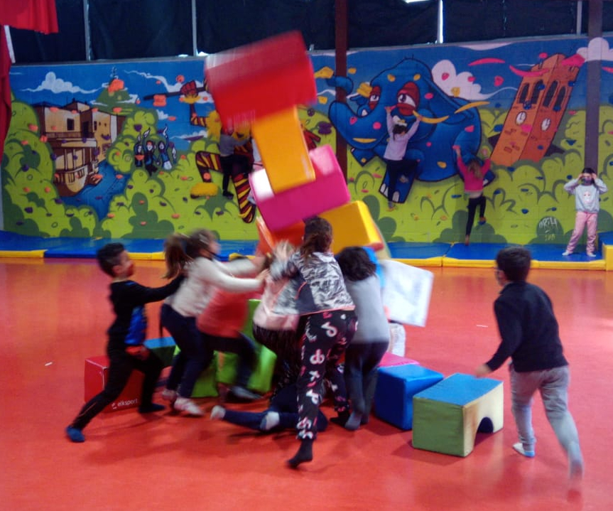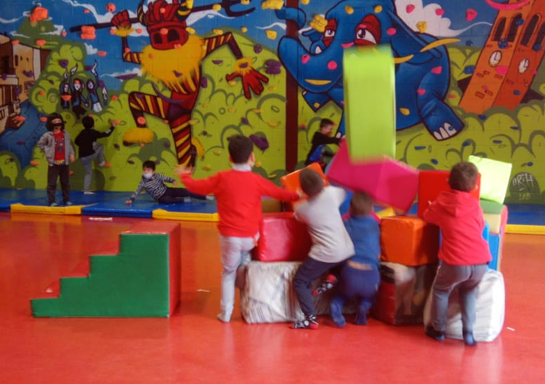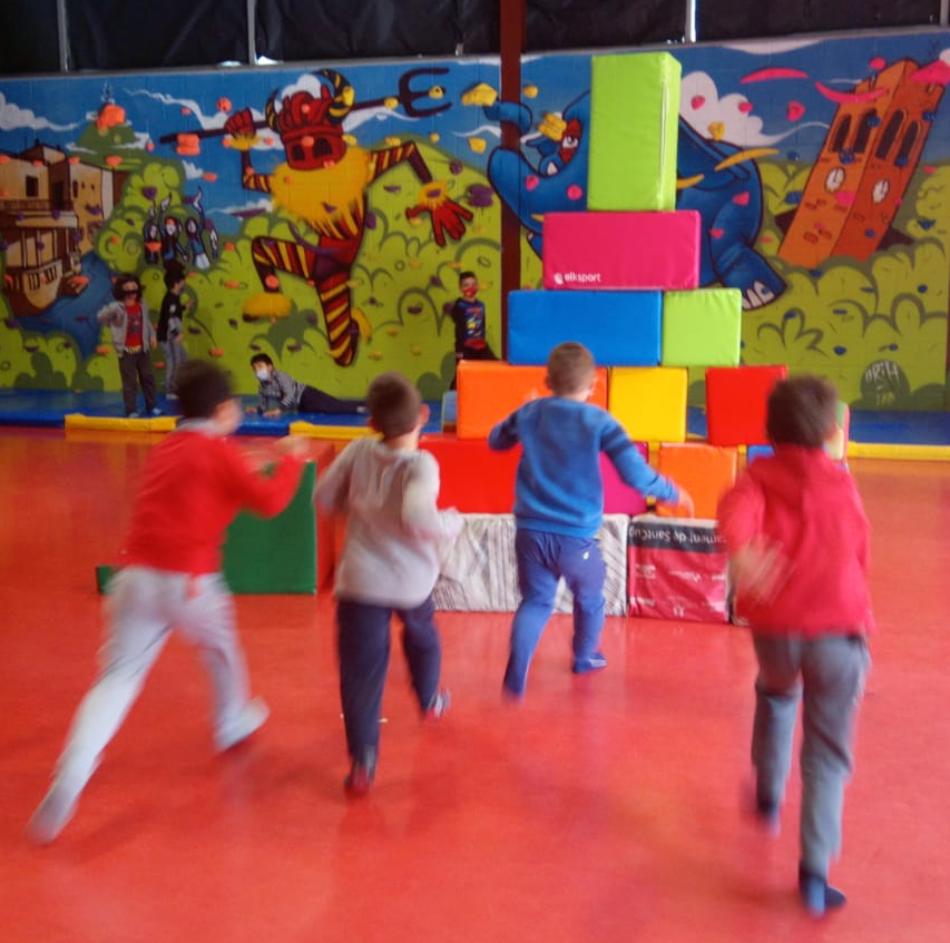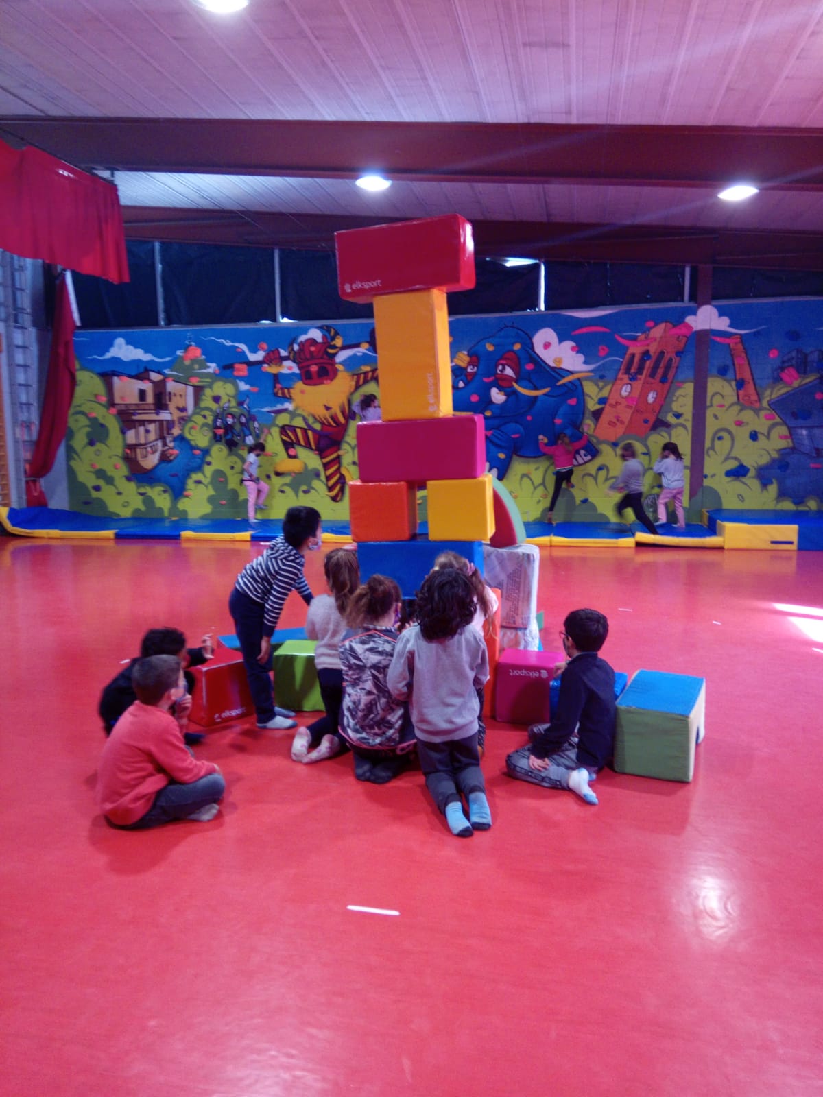 Pel que fa al matalàs gran és una eina que ajuda a desenvolupar les habilitats motrius bàsiques (salts, girs, desplaçaments…) i a l’hora es produeix d’una manera molt lúdica. És un material adient per realitzar circuits o activitats més dirigides.