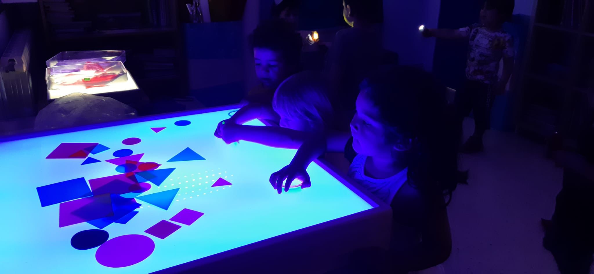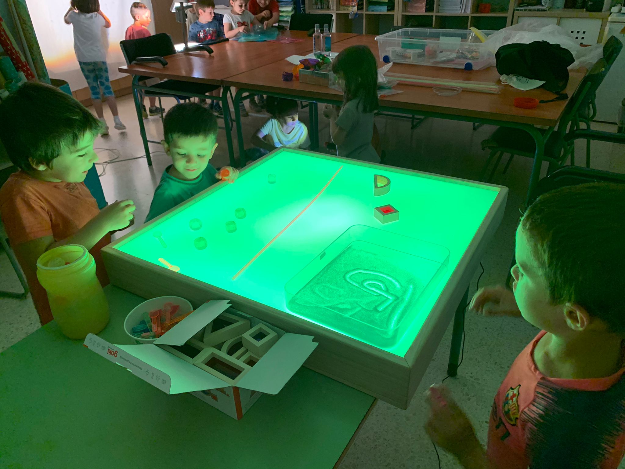 Mitjançant la taula i els diferents efectes de llum i colors, els infants poden gaudir, investigar i jugar, tot observant com es comporta la llum quan passa a través de diferents objectes, materials, dibuixos… Així han imaginat i creat històries meravelloses i han passat unes estones ben divertides!
