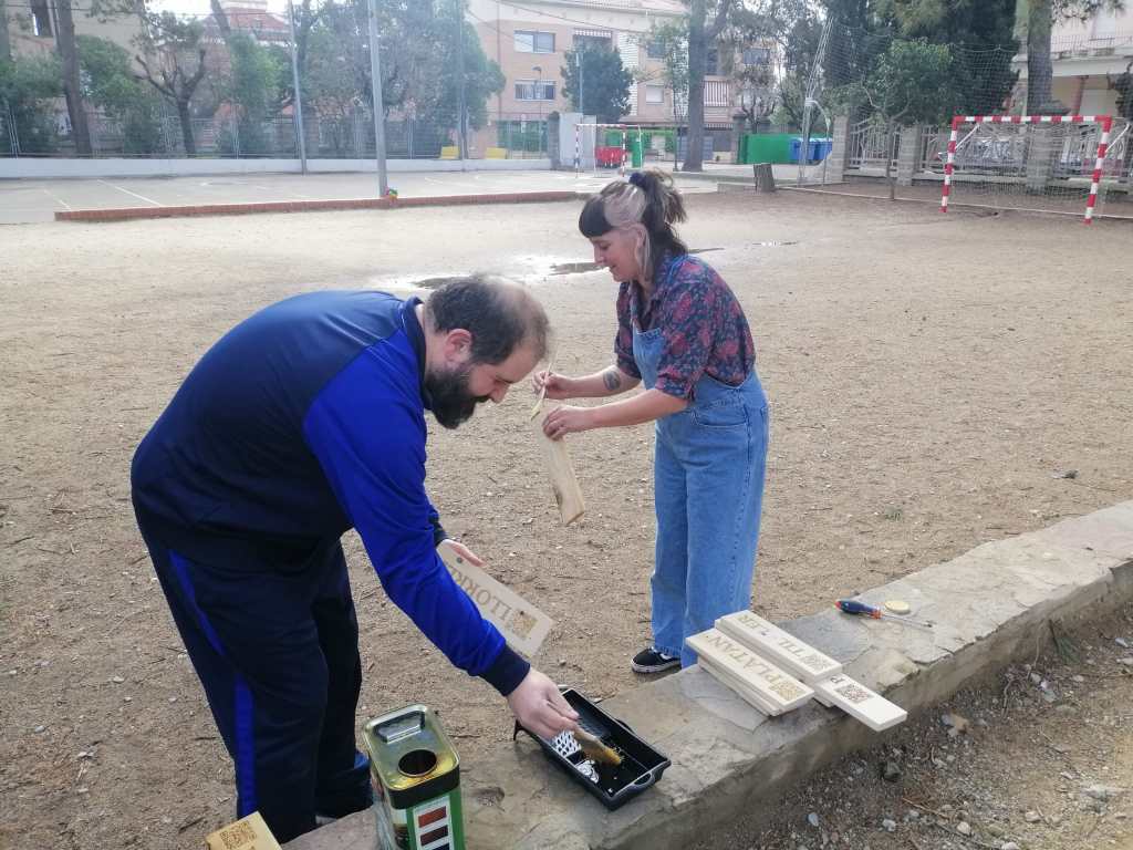 - Penjar les plaques identificatives dels arbres del pati de primària.