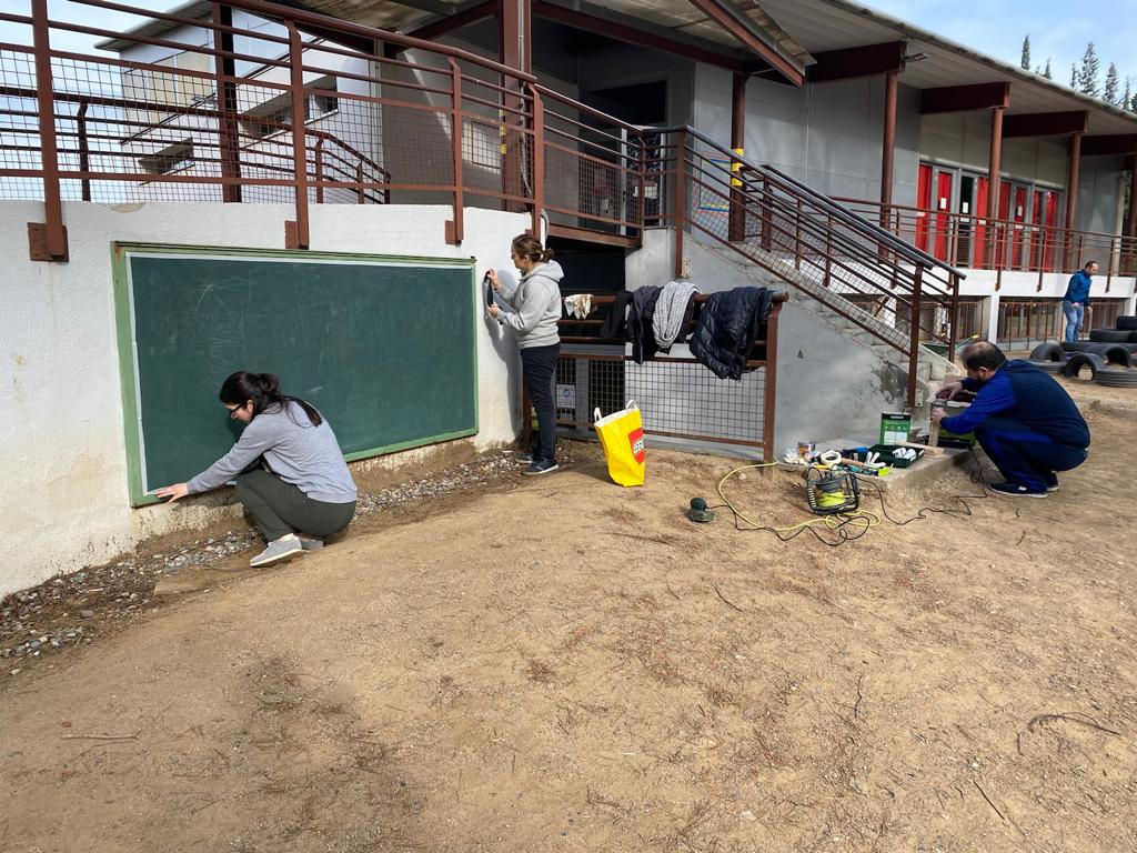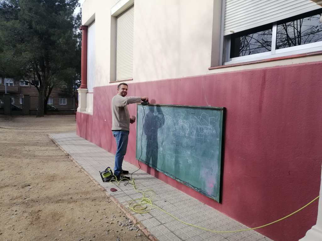 - Polir i pintar els marcs oxidats de les tres pissarres del pati.