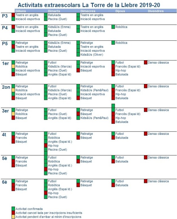 Hola famílies ja tenim tota la informació pel servei extraescolars, aquí us deixem tota la informació. Informació important: El nombre mínim per obrir grup serà de 6/7 alumnes. El cost de l’activitat és fix i mensual i/o trimestral i no depèn de les sessions realitzades. El cobrament es du a terme mitjançant domiciliació bancària la... Continue Reading →
